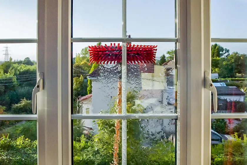 Das gereinigte Wasser zieht auf natürliche Weise Schmutz und Dreck von der Glasoberfläche an und trocknet, ohne Rückstände oder Flecken zu hinterlassen. Hohe Fenster werden sicher und effizient mit leichten, wasserführenden Teleskopstangen erreicht, wodurch die Notwendigkeit von Leitern oder Gerüsten entfällt. Diese Stangen liefern gereinigtes Wasser direkt an die Oberfläche, während weiche, spezialisierte Bürsten sanft den Schmutz abreiben und eine sichere, gründliche und professionelle Reinigung bieten – perfekt für schwer zugängliche Bereiche!